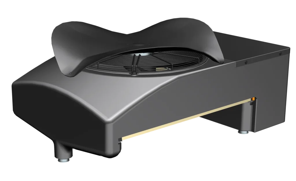 Een liggend model warmtepomp, wat hem vrijwel onzichtbaar maakt. Ontworpen voor grotere huizen en een hoge warmtevraag.